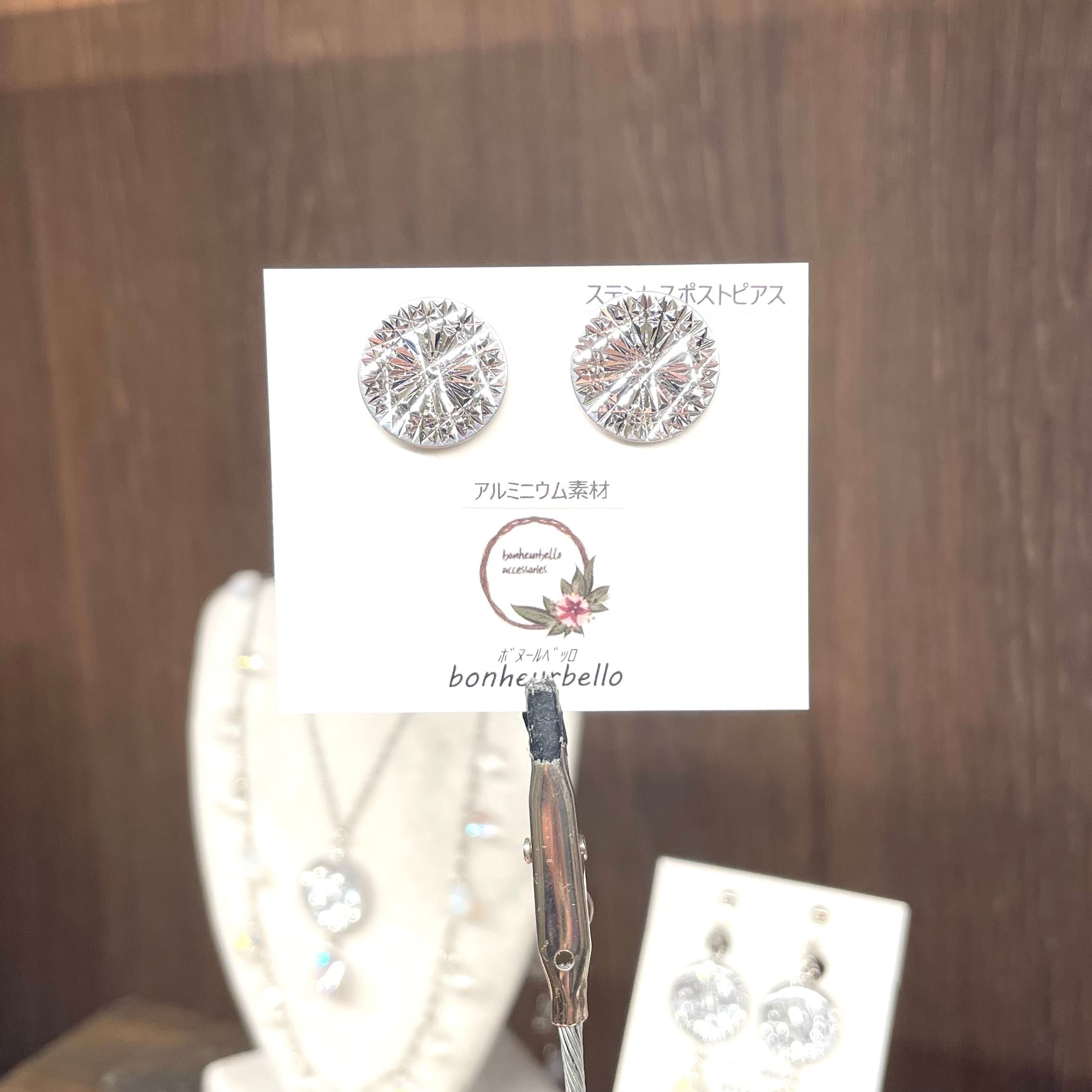 ダイヤモンドカッターでカッティングを施したアルミプレートを使用したピアス/イヤリング。