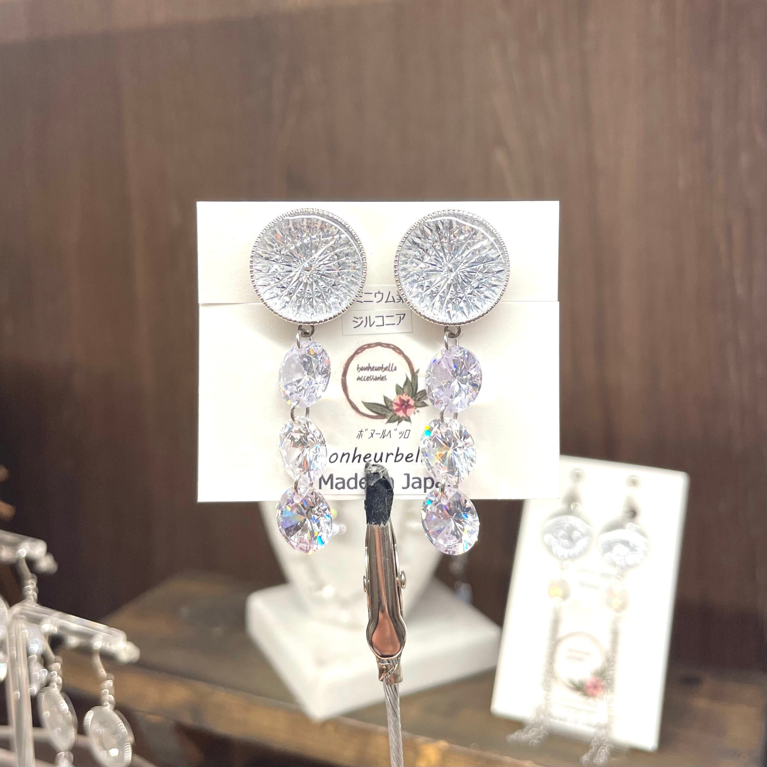 ピアスの芯部分はステンレス素材、イヤリングはメッキ加工のものになります。