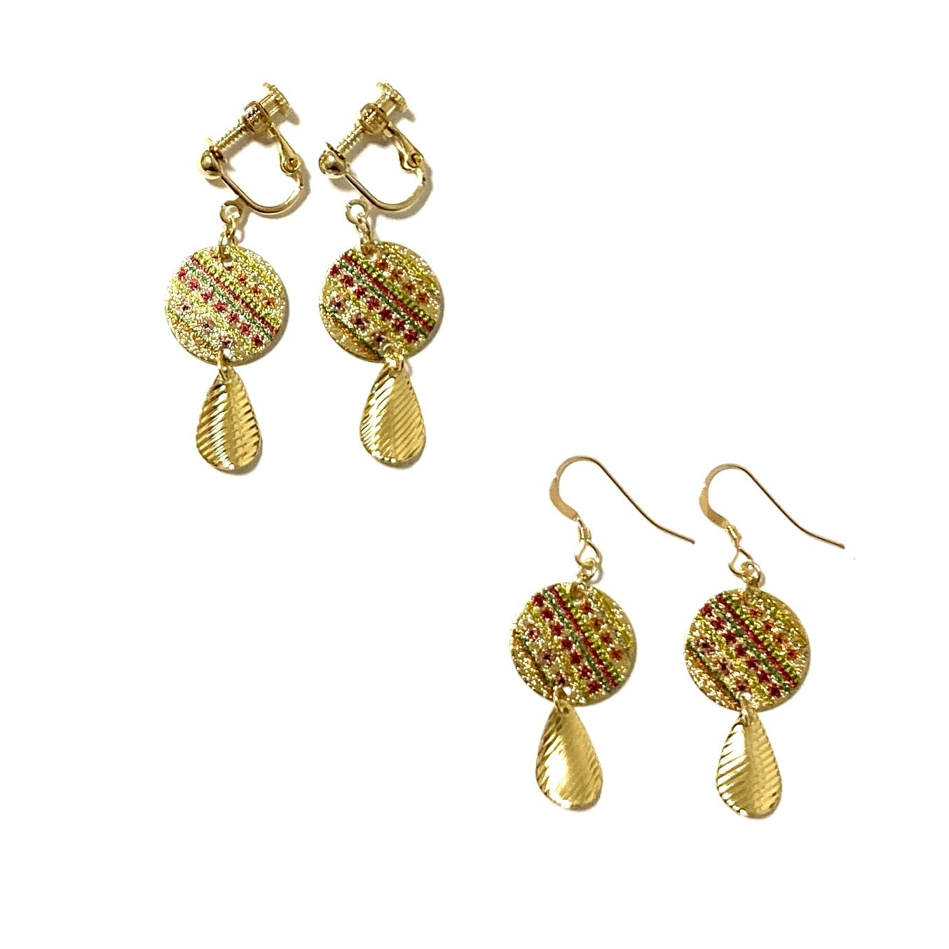 細かい花柄を施したプリントメタルを使ったピアス/イヤリング。