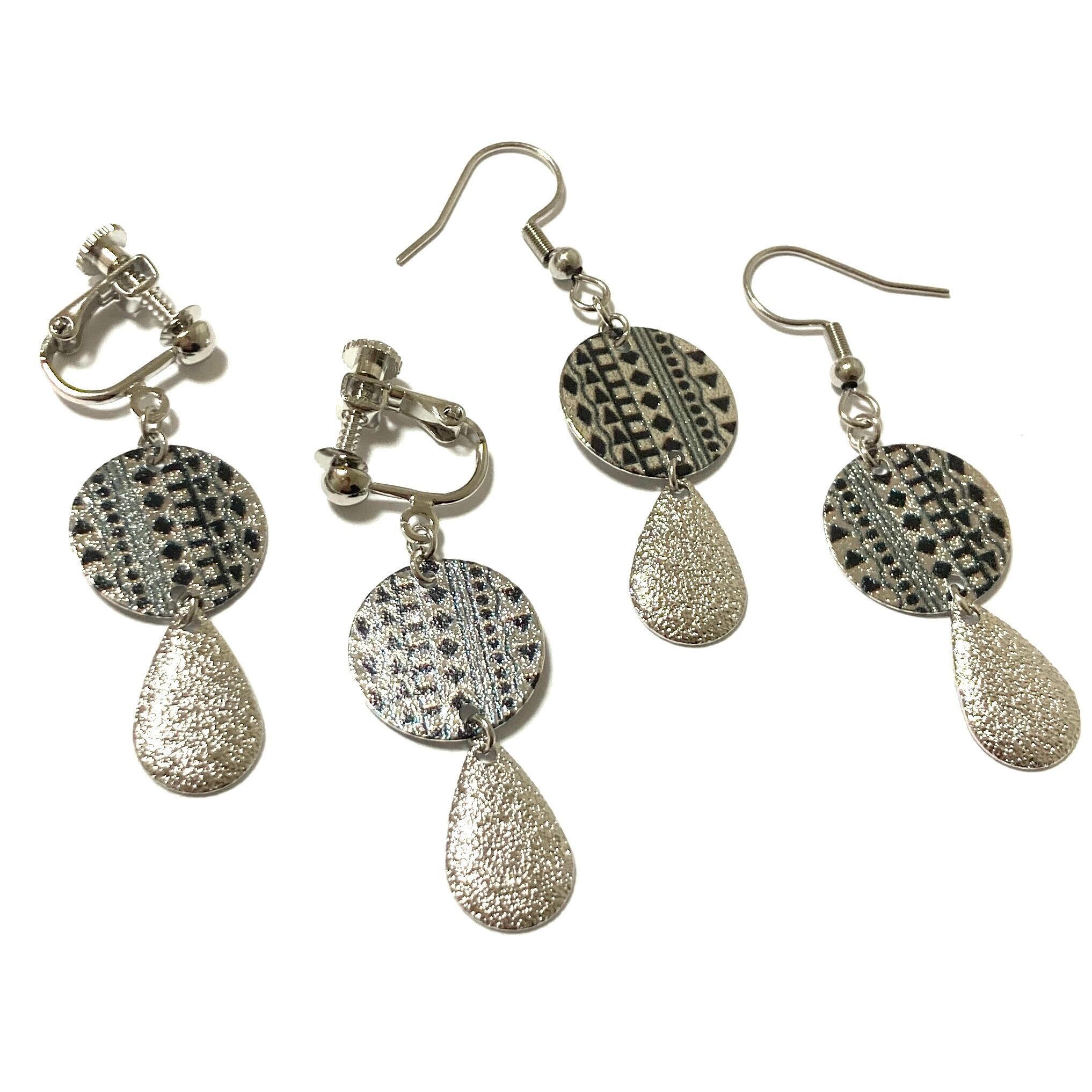シルバーベースにエスニックプリントを施したプリントメタル。