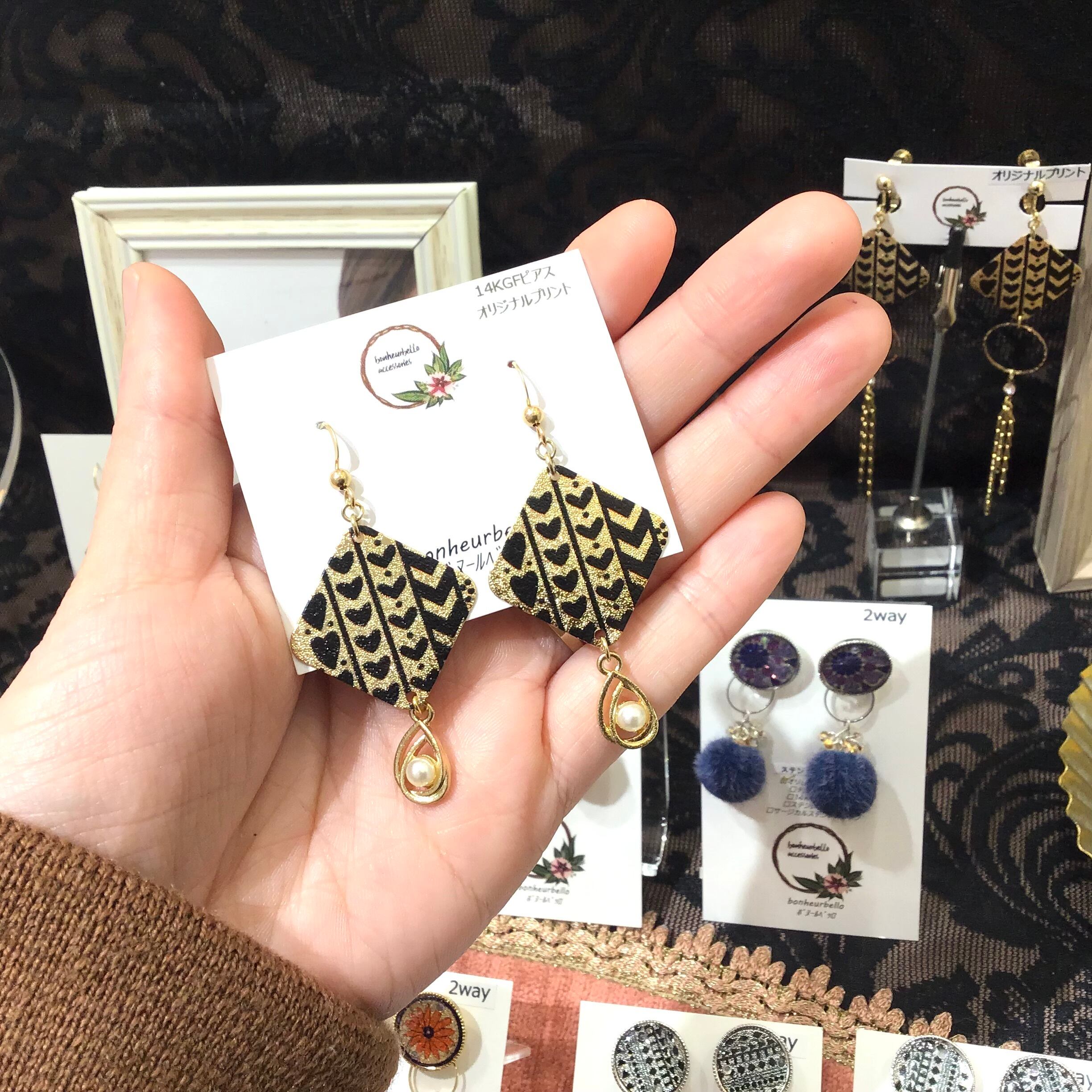Bonheurbelloのデザイナーが作成した柄をメタルパーツにプリント加工した、