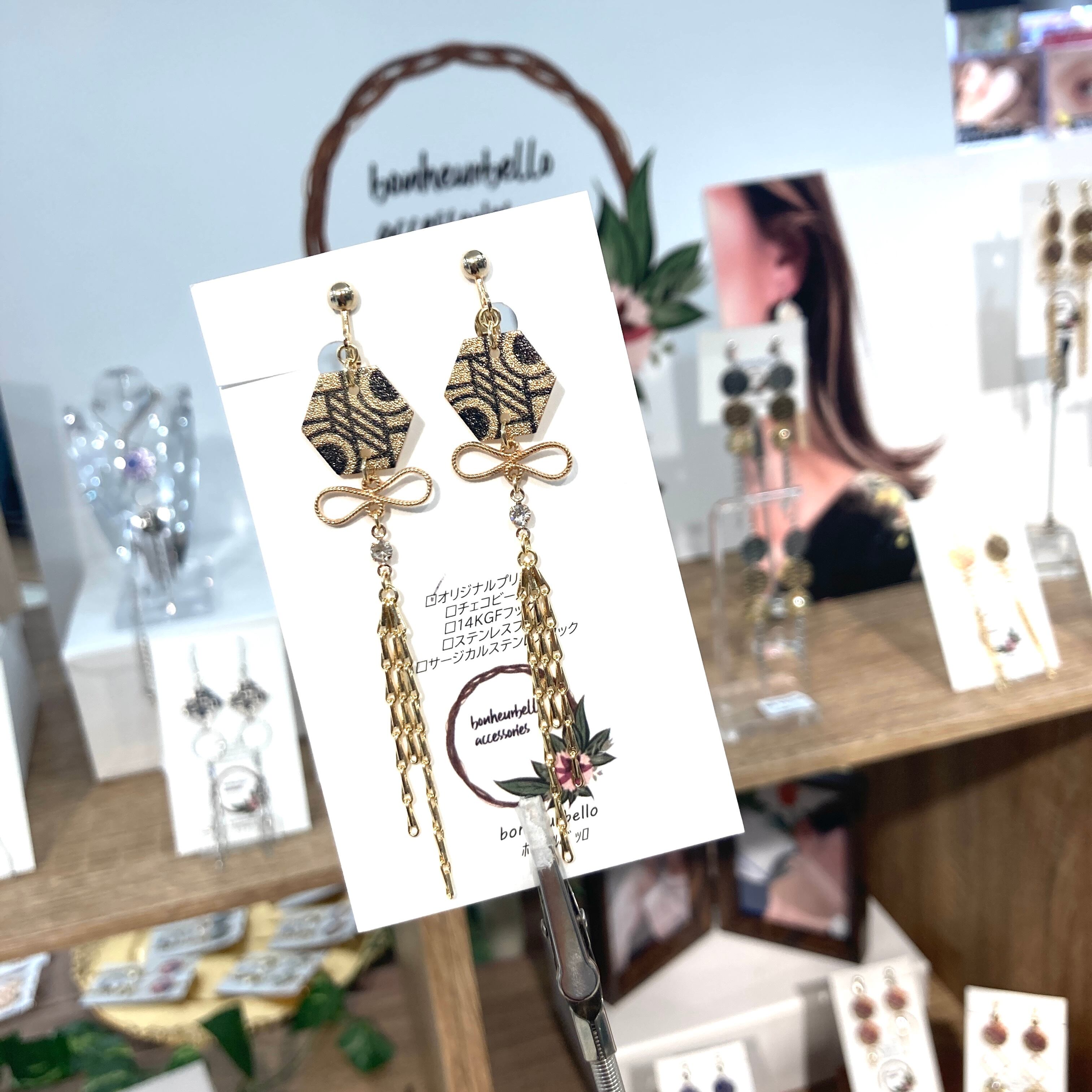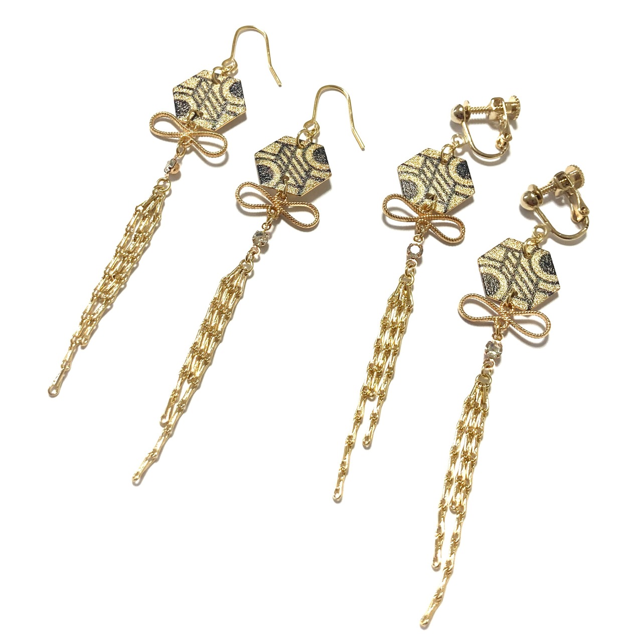 ジオメタリックヘキサゴンプリントロングピアス/イヤリング
