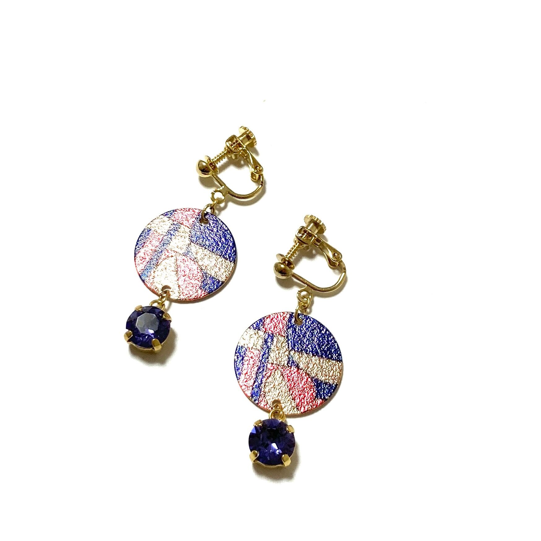 バイカラープリント×ガラスストーンピアス/イヤリング